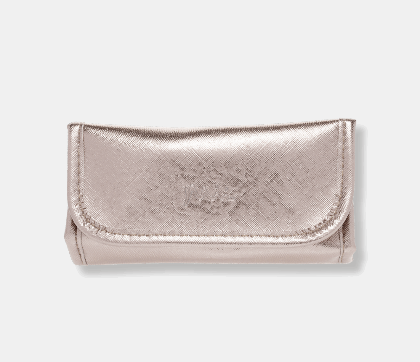 For flawless makeup on the go, our 5-piece mini makeup brush set includes all the essential tools for perfecting your base, eyes and cheeks. Designed with shorter handles and full-sized, silk-soft heads, each brush offers precision and professional quality performance. Housed in a sleek, travel-friendly rose gold roll case, your vegan brushes stay protected and ready whenever you are.