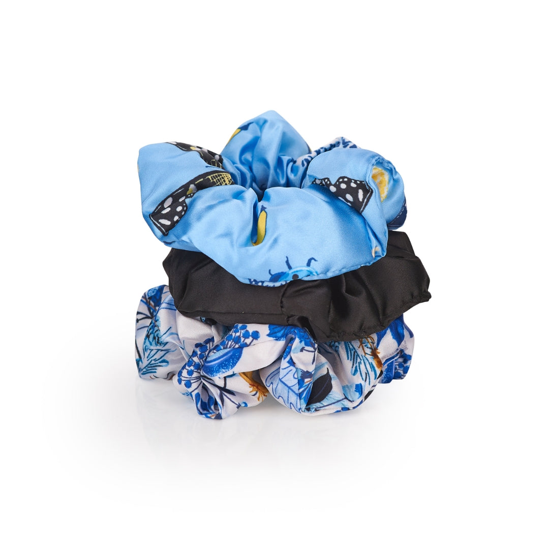 Cloud Satin Hair Scrunchie Set (set of 3) - Cornflower Butterflies
