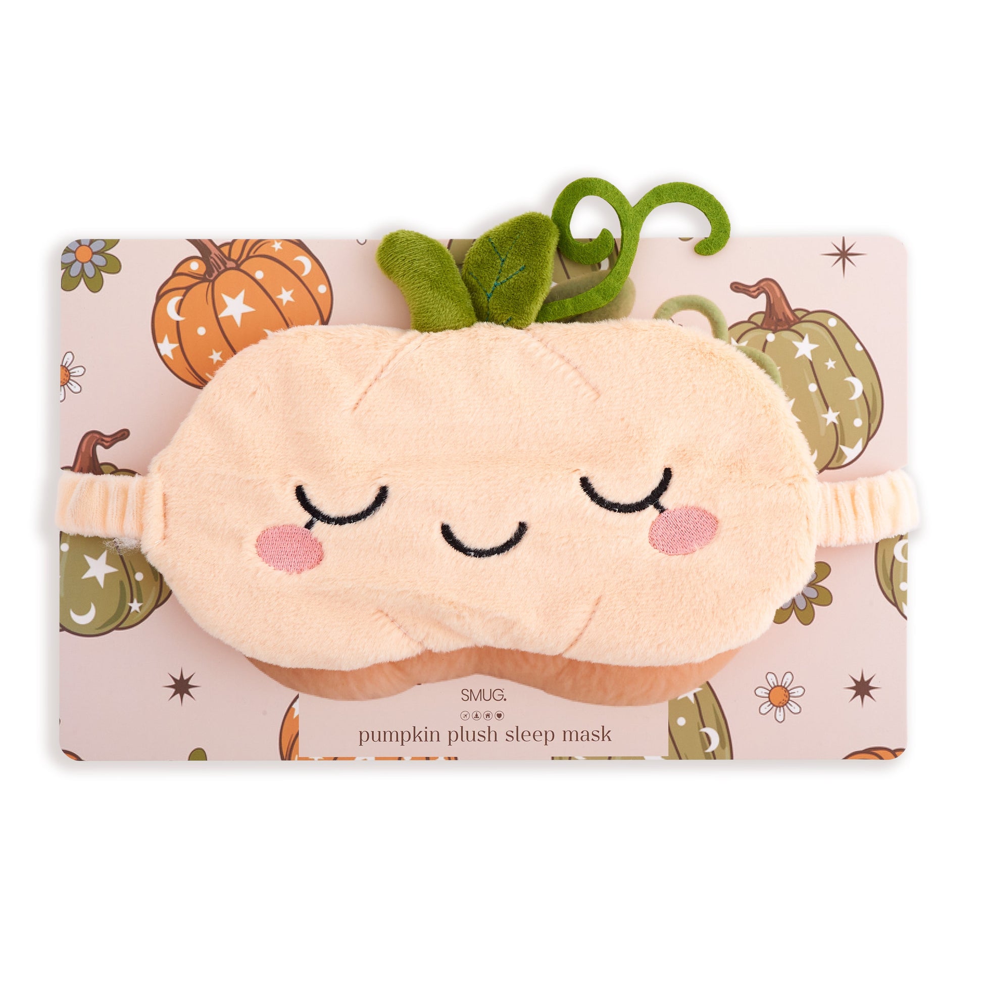 Celebrate spooky season in cosy style with the SMUG Pumpkin Plush Sleep Mask. Featuring a soft pastel orange design with cute embroidered cheeks and leafy green top, it’s a Halloween essential for restful nights and cute seasonal vibes.